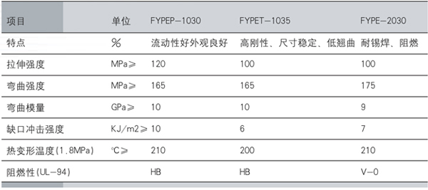 PEPET具有优异的机械强度、尺寸稳定性、高耐热性、高刚性及优良的电性能,可广泛用于电子、电气、汽车及机械的功能方面。普通FRPET结晶速度慢,成型加工时存在模具温度高(80-130摄氏度),成型周期长,有时需要热处理完善结晶等缺点。本系列产品加快了PET的结晶速度,使成型模温降至60-65摄氏度,并缩短了成型周期。