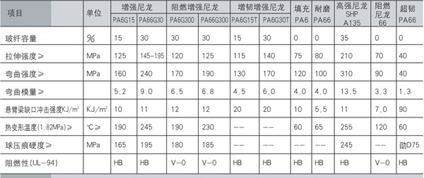 本品具有比一般工程塑料更高的机械强度和弹性模量、热变形温度高、应用温度范围广泛、耐化学性能优异、低成型收缩率、低翘曲、耐磨损、低摩擦系数、适宜精密注射成型,且表面硬度高,可在许多行业全面替代金属材料。本系列包括PA6、PA66、PA1010、PA12、PA46 等。